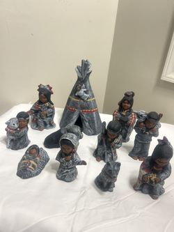 SET OF 11 PCS RANDOM HAND PAINTED NATIVE AMERICAN INDAIN NATIVITY IN GOOD CONDITION $45Jessup, MD