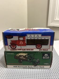 Lot Of 2 ERTL DIE-CAST. METAL 1925 Kenworth Sack Truck Bank / 1931?Hawkeye Crate Bank Both New $35Jessup, MD