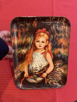 CRV Enesco Paper Mache Alcohol Proof Serving Tray 9x12”. Girl- Made In Japan $25Lynnwood, WA