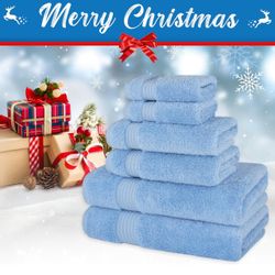 Cotton Paradise 6 Piece Towel Set, 100% Turkish Cotton Soft Absorbent Towels for Bathroom, 2 Bath Towels 2 Hand Towels 2 Washcloths, Sky Blue Towel Se$35Fontana, CA