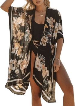 Beach Coverup for Women Swimsuit Cover Up with Bohemian Floral Loose Casual Kimono Cardigan Side Slit Chiffon Blouse$15Fontana, CA