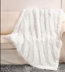usoki Thick White Faux Fur Throw Bed Blanket,2 Layers,50" x 60", Soft Fuzzy Fluffy Plush Couch Blank$20Fontana, CA