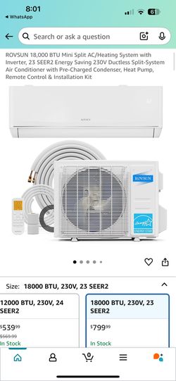ROVSUN 12000 BTU Smart WIFI Ducted Mini Split AC/Heating System with Inverter$599Houston, TX