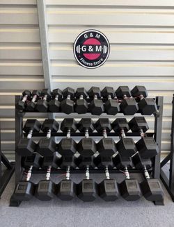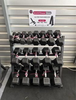 New pair of 5,10,15,20,25,30,35,40,45,50lb rubber dumbbells with A rack. New in box 📦 $705$705Houston, TX