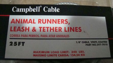 CAMPBELL CABLE VINYL COATED SIZE 25 FT 1/8" BRAND NEW $20$20Richardson, TX