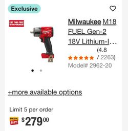 Milwaukee M18 Fuel Impact Wrench Mid Torque $225Renton, WA