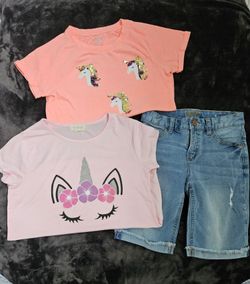 Girls Unicorn tops bermuda shorts Size 10-12 $10Oak Ridge North, TX