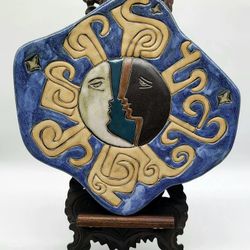 Vtg Mara Stoneware Celestial Sun Stars Face Hand Painted Plate Platter Mexico$25Modesto, CA