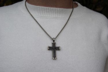 David Yurman Silver Chain + Chevron Cross Pendant With Black Diamonds$700Battle Ground, WA