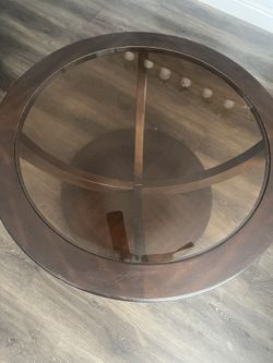 La Jolla Round Cocktail (Coffee) table and end table. Cherry wood/ beveled glass tops.$300Tampa, FL