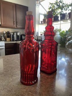 Set Of 2 Pressed Glass Bottles Red Color $10Las Vegas, NV