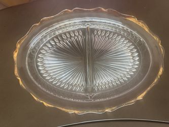 Jeanette Glass oval relish dish with a scalloped gold trim & a starburst pattern$15Sun City, AZ