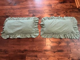 RALPH LAUREN. TWO KELLY GREEN AND WHITE GIGHAM CHECK RUFFLED PILLOW SHAMS. KING.$50Centerville, OH