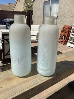 Set of 2 White Blue Gray Opalescent Abstract Modern Art Glass Vases Floor Home Decor$60El Mirage, AZ