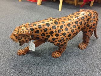 Vintage leather wrapped cheetah cat statue : large leopard figurine$99Orlando, FL