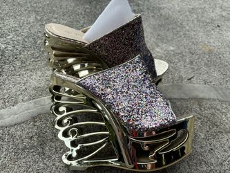 New Size 7 Women’s High Heel Block Gold Glitter Wedding Event Shoes $20Seattle, WA