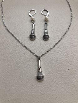 Silver Tone Microphone Charm Necklace & Pierced Earring Set NEW$20Claremont, CA