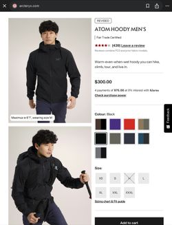 Arc’teryx Atom Hoody – Black/Soul/Electra Size S$450Portland, OR