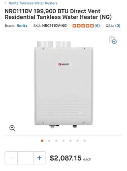 Noritz Tank Less Water Heater Natural Gas 11.1 GPM$1,600Houston, TX
