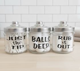 Funny Bathroom Storage Jars – Customizable Cotton Ball & Q-Tip Holders$15San Antonio, TX