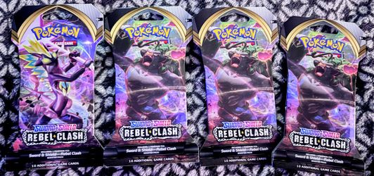 POKEMON SWORD AND SHIELD REBEL CLASH TCG BOOSTER PACKS 4 PACKS TOTAL$25Wenham, MA