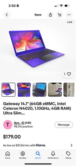Gateway 14.1" (64GB eMMC, Intel Celeron N4020, 1.10GHz, 4GB RAM) Ultra Slim...$170Houston, TX