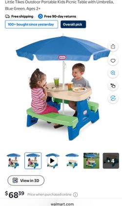 Little Tikes Outdoor Portable Kids Picnic Table with Umbrella, Blue Green, Ages 2+$45Houston, TX