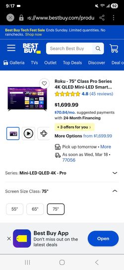 ROKU 75” CLASS PRO SERIES $790Houston, TX