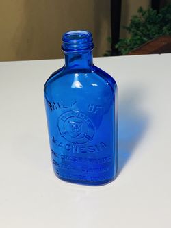 Vintage Early 1900’s Empty Milk Of Magnesia 7” Cobalt Blue Glass Embossed Bottle$20San Antonio, TX
