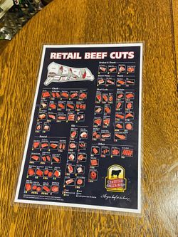 17”x 11” Inch Two Sided Laminated Certified Angus Beef Cuts & Pork Cuts Butcher Chart$12San Antonio, TX