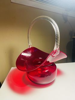 Beautiful Large Vintage Handblown Cranberry Ruby Red Murano Glass Art Basket. Beautiful Condition. A Great Gift$27San Antonio, TX