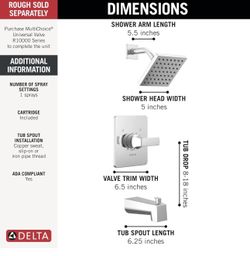 Delta Faucet Velum 14 Series Single-Function Chrome Tub and Shower Faucet Set, Valve Trim Kit, Shower Handle, Delta Shower Trim Kit, Shower Set$80Fontana, CA
