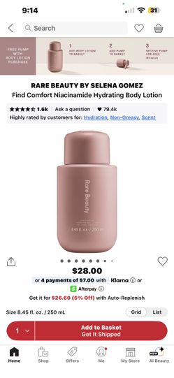 Rare beauty hydrated body lotion$20Mission Viejo, CA