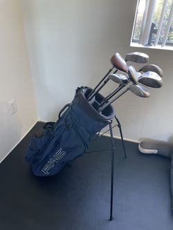 Blue Ping Hoofer 2 Stand Bag 4-Way Divider 8 Pockets Strap Handle + 8 Clubs $80Tucson, AZ