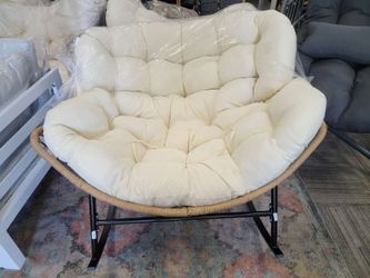 SoldRocking Papasan Chair, Oversized Indoor Outdoor Sturdy All Weather Royal Rocking Chair, Patio Wicker Rocker Chairs, Cozy Thicken Cushions Egg Rocking $80Chino, CA