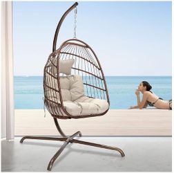 Egg Chair Indoor Outdoor Patio Wicker Hanging Chair with Stand, Swing Egg Chairs All Weather Resistant with Thicken Comfy Cushions, 350lbs Capacity fo$100Chino, CA