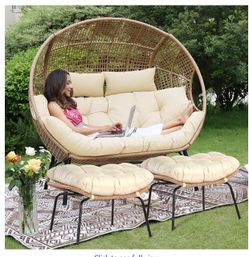 2 Person Egg Chair indoor OutdoorStationary Wicker Large Egg Seating 680lbsEgg Basket Lounge Chair with OttomanFootrest for Patio Balcony Porch Tan Co$200Chino, CA