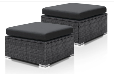 Modern Luxury All-Weather Outdoor Wicker Ottoman Set of 2, 500 Lbs Alloy Steel Frame Footrest, Comfortable Wide Deep Seat 2-Piece Rattan Foot Stool wi$40Chino, CA