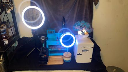 Make Up Station Organizer Two O Light Mirrors And Mini Small Cosmetics Fridge Frigidaire $60Riverside, CA