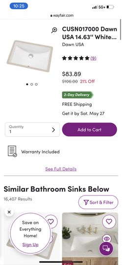 CUSN017000 Dawn USA 14.63'' White Ceramic Rectangular Undermount Bathroom Sink with Overflow$50Phoenix, AZ
