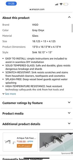 VIGO Onyx 18.125 inch L x 13 inch W Over the Counter Freestanding Glass Rectangular Vessel Bathroom Sink in Gray Onyx - Sink for Bathroom VG07084$110Phoenix, AZ
