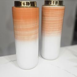 Pair of Modern Orange and White Ombre Ceramic Vases with Gold Rims$25Fort Lauderdale, FL