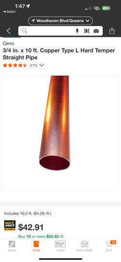 3/4 Copper Pipe Type L Full Length Trade For 1/2”$35Queens, NY