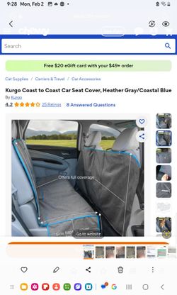 Kurgo Coast to Coast Car Seat Cover, Heather Gray/Coastal Blue$45Scottsdale, AZ