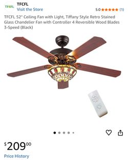 52 Inch Antique Ceiling Fan with Tiffany Light.$110Tacoma, WA