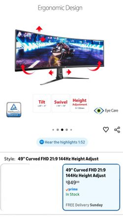 ASUS ROG Strix XG49VQ 49” Curved Gaming FreeSync Monitor 144Hz$450Corona, CA