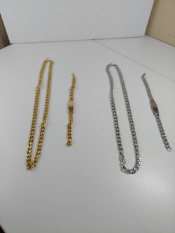 2 Stainless Steel Bracelets & Chains Pairs Color Gold & Mix $18Montclair, CA