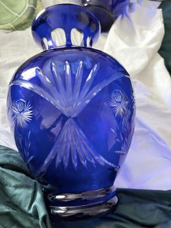 Bohemian Crystal Beautiful cobalt blue cut-to-clear crystal vase with starburst base and hand-cut patterns. Approximately 11 inches tall. Heavy qualit$100San Antonio, TX