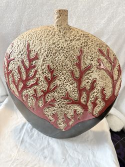 Large textured ceramic vase from HomeGoods. Beautiful coral reef design with neutral tones and red coral accents. Great for beach, coastal, or modern$35San Antonio, TX