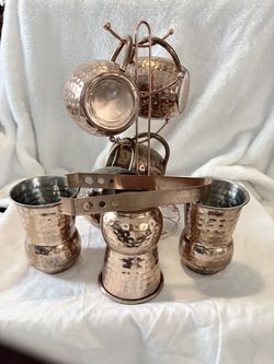 Copper mule set 7 copper mugs matching mug holder and matching tongs copper$55San Antonio, TX